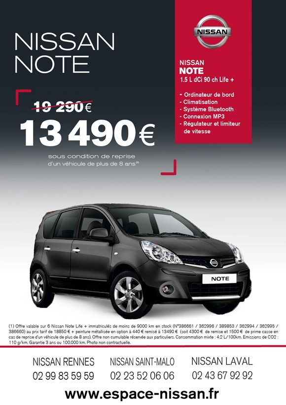 6 NISSAN Note 1.5 L dCi 90 ch Life + en stock à 13490 € !!