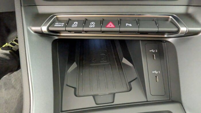 - 2 prises USB AR (type-C) et prise 12V dans la console centrale AR