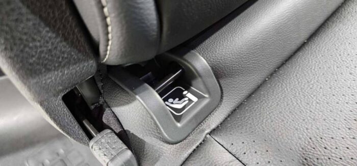 - Banquette 3 places 2/3-1/3 montée sur rail déposable avec mise en tablette et portefeuille avec fixations ISOFIX en rang 3