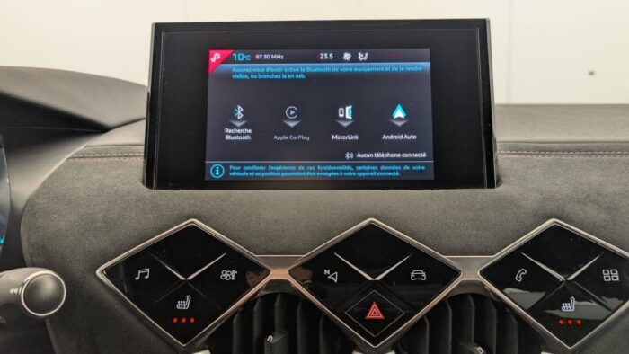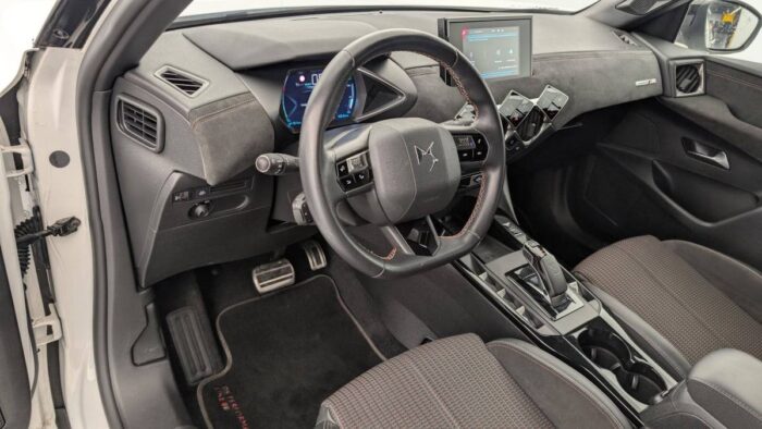 - Inspiration DS PERFORMANCE Line : DS Wings Noir Pailleté Texturé Aumônières de dos sur les sièges AV Pommeau de levier de vitesses en cuir lisse Accoudoir central Volant Cuir avec et surpiqûres Carmin et Or Rehausse manuelle du siège passager Guillochage "Clous de Paris" Noir Mat Pare-soleil avec miroir de courtoisie et éclairage à LED Plafonnier tactile à LED, liseuses AR à LED, éclairage de cave à pieds à LED Poignées de maintien aux places AR Sièges AV à haute densité Garnissage tissu Tressé Basalte avec Alcantara PERFORMANCE Line Panneaux de portes Alcantara PERFORMANCE Line avec surpiqûres Carmin et Or Pédalier alu Planche de bord Alcantara PERFORMANCE Line avec surpiqûres Carmin et Or Plip avec insert Carmin DS Grille de calandre Gris Anthra Seuils de porte avant DS PERFORMANCE Line Jonc sur volet Noir Brillant signé CROSSBACK et paupières Noir pailleté texturé avec logo DS