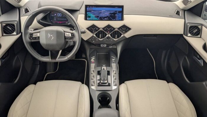 - Intérieur Tissu Luxembourg avec cuir Nappa Gris Galet : Ciel de pavillon Gris Galet Volant Cuir fleur Décor Toile DS Gris Galet confection diamant Siège Tissu Luxembourg avec Cuir Nappa Gris Galet Planche de bord en Cuir Nappa Gris Galet