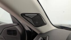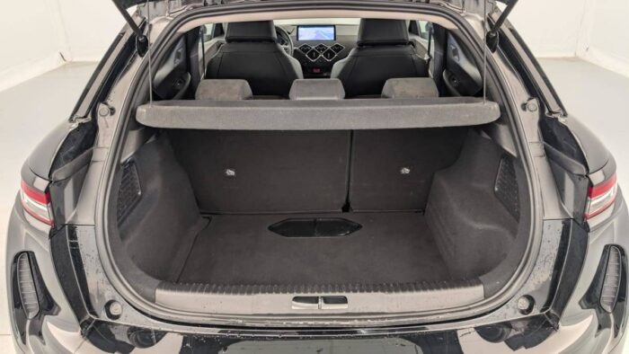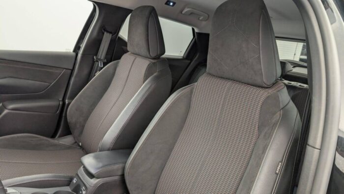 - Intérieur Alcantara Noir : Ciel de pavillon Gris Galet Volant Cuir fleur perforé et coutures Or et Carmin Décor Alcantara Noir Siège Tissu Tressé Basalte avec Alcantara