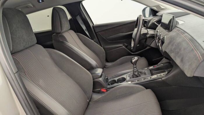 - Intérieur Tissu tressé Basalte avec Alcantara : Planche de bord Alcantara Noir Ciel de pavillon Gris Galet Volant Cuir fleur perforé et coutures Or et Carmin Décor Alcantara Noir Siège Tissu Tressé Basalte avec Alcantara