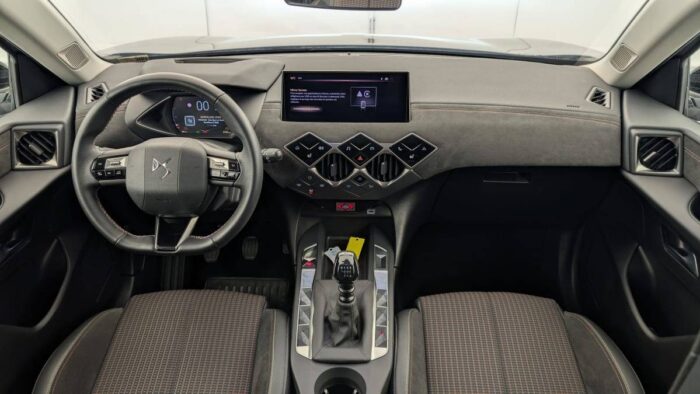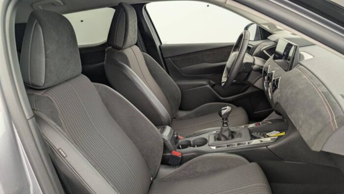 - Intérieur Alcantara Noir : Ciel de pavillon Gris Galet Volant Cuir fleur perforé et coutures Or et Carmin Décor Alcantara Noir Siège Tissu Tressé Basalte avec Alcantara