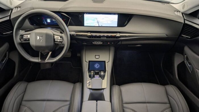 - Intérieur Cuir grainé Noir Basalte et Toile DS : Ciel de pavillon clair Décors de panneaux de porte Chrome guilloché Volant en cuir fleur Mistral Console centrale en Toile DS Mistral Planche de bord en toile DS Noir Basalte façon écaille Panneaux de portes en toile DS Noir Basalte façon écaille Sellerie en Cuir grainé Noir Basalte et Toile DS Parties centrales des sièges AV, partie centrale des sièges latéraux AR et partie AV des appuie-tête en cuir. Bourrelets latéraux des sièges AV, accoudoir central et siège central AR, et parties latérales et AR des appuis tête en Toile DS.
