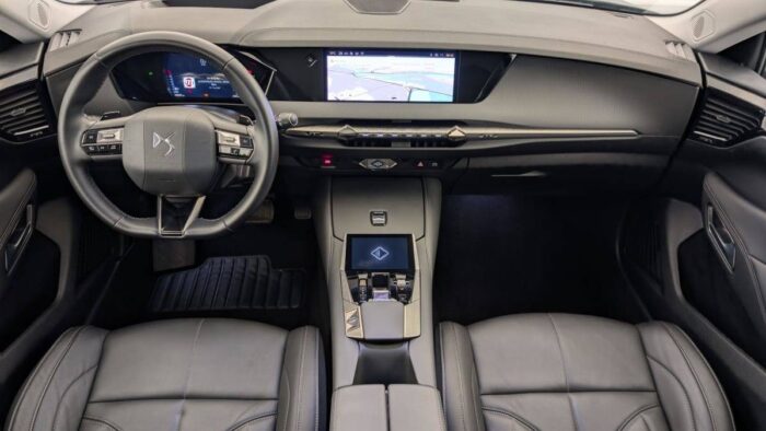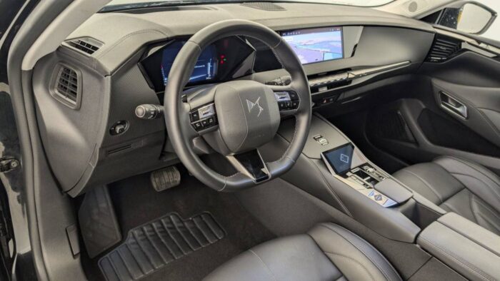 - Intérieur Cuir grainé Noir Basalte et Toile DS : Ciel de pavillon clair Décors de panneaux de porte Chrome guilloché Volant en cuir fleur Mistral Console centrale en Toile DS Mistral Planche de bord en toile DS Noir Basalte façon écaille Panneaux de portes en toile DS Noir Basalte façon écaille Sellerie en Cuir grainé Noir Basalte et Toile DS