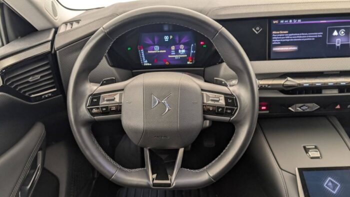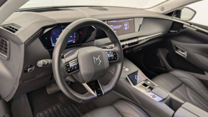 - Intérieur Cuir grainé Noir Basalte et Toile DS : Ciel de pavillon clair Décors de panneaux de porte Chrome guilloché Volant en cuir fleur Mistral Console centrale en Toile DS Mistral Planche de bord en toile DS Noir Basalte façon écaille Panneaux de portes en toile DS Noir Basalte façon écaille Sellerie en Cuir grainé Noir Basalte et Toile DS