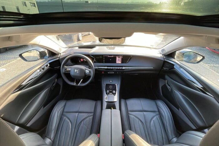 - Intérieur Cuir grainé Noir Basalte : Sellerie en Cuir grainé Noir Basalte Décors de panneaux de porte Chrome guilloché Volant en cuir fleur Mistral Console centrale en Toile DS Mistral Planche de bord en toile DS Noir Basalte façon écaille Panneaux de portes en toile DS Noir Basalte façon écaille Ciel de pavillon Salin