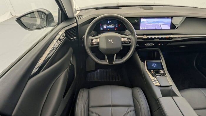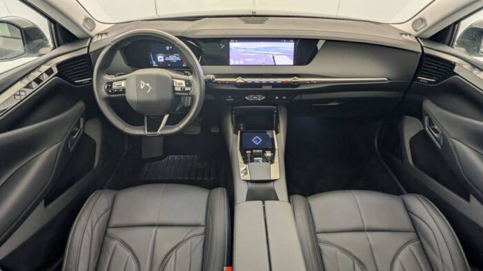 - Intérieur Cuir grainé Noir Basalte : Sellerie en Cuir grainé Noir Basalte Décors de panneaux de porte Chrome guilloché Volant en cuir fleur Mistral Console centrale en Toile DS Mistral Planche de bord en toile DS Noir Basalte façon écaille Panneaux de portes en toile DS Noir Basalte façon écaille Ciel de pavillon Salin