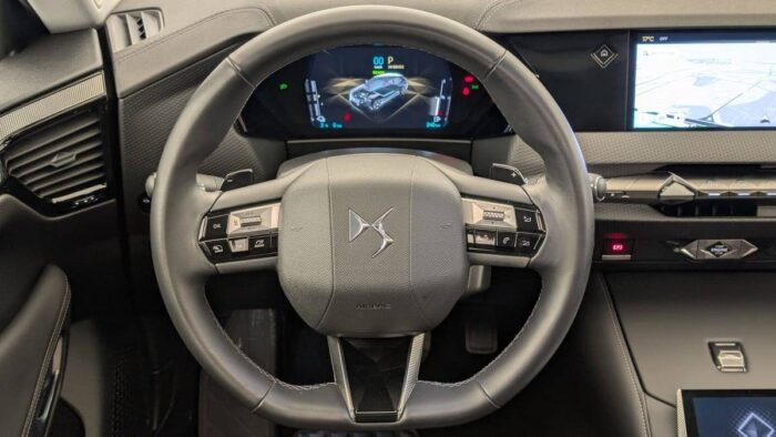 - Intérieur Cuir grainé Noir Basalte et Toile DS : Ciel de pavillon clair Décors de panneaux de porte Chrome guilloché Volant en cuir fleur Mistral Console centrale en Toile DS Mistral Planche de bord en toile DS Noir Basalte façon écaille Panneaux de portes en toile DS Noir Basalte façon écaille Sellerie en Cuir grainé Noir Basalte et Toile DS