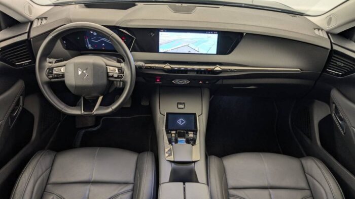 - Intérieur Cuir grainé Noir Basalte et Toile DS : Ciel de pavillon clair Décors de panneaux de porte Chrome guilloché Volant en cuir fleur Mistral Console centrale en Toile DS Mistral Planche de bord en toile DS Noir Basalte façon écaille Panneaux de portes en toile DS Noir Basalte façon écaille Sellerie en Cuir grainé Noir Basalte et Toile DS