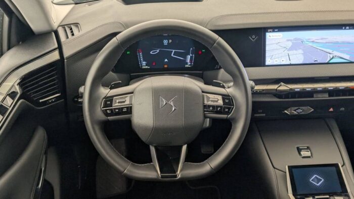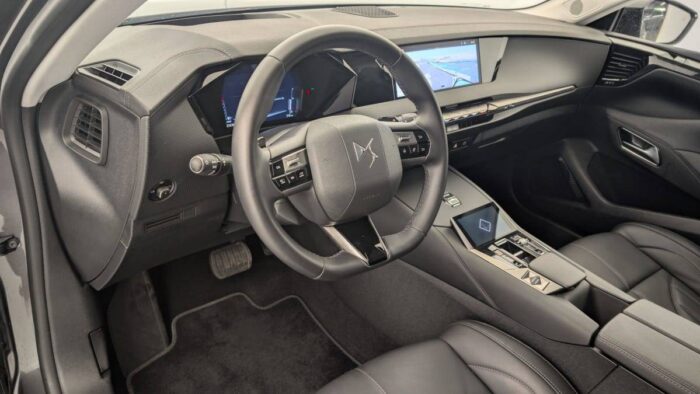 - Intérieur Cuir grainé Noir Basalte et Toile DS : Ciel de pavillon clair Décors de panneaux de porte Chrome guilloché Volant en cuir fleur Mistral Console centrale en Toile DS Mistral Planche de bord en toile DS Noir Basalte façon écaille Panneaux de portes en toile DS Noir Basalte façon écaille Sellerie en Cuir grainé Noir Basalte et Toile DS