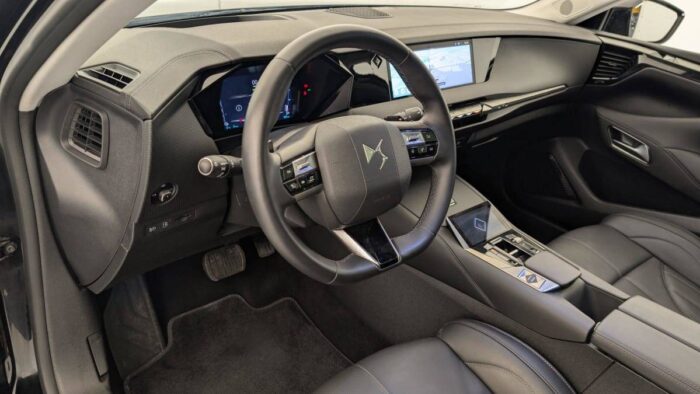 - Intérieur Cuir grainé Noir Basalte et Toile DS : Ciel de pavillon clair Décors de panneaux de porte Chrome guilloché Volant en cuir fleur Mistral Console centrale en Toile DS Mistral Planche de bord en toile DS Noir Basalte façon écaille Panneaux de portes en toile DS Noir Basalte façon écaille Sellerie en Cuir grainé Noir Basalte et Toile DS