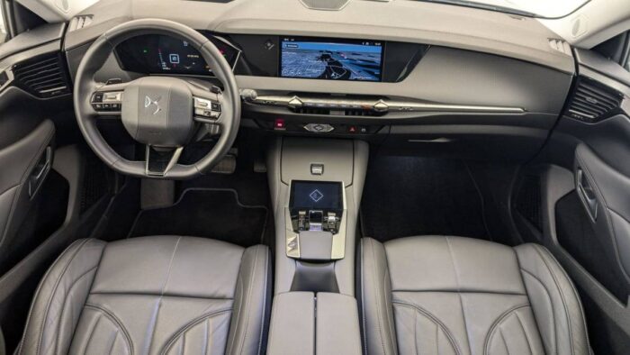 - Intérieur Cuir grainé Noir Basalte et Toile DS : Ciel de pavillon clair Décors de panneaux de porte Chrome guilloché Volant en cuir fleur Mistral Console centrale en Toile DS Mistral Planche de bord en toile DS Noir Basalte façon écaille Panneaux de portes en toile DS Noir Basalte façon écaille Sellerie en Cuir grainé Noir Basalte et Toile DS Parties centrales des sièges AV, partie centrale des sièges latéraux AR et partie AV des appuie-tête en cuir. Bourrelets latéraux des sièges AV, accoudoir central et siège central AR, et parties latérales et AR des appuis tête en Toile DS.