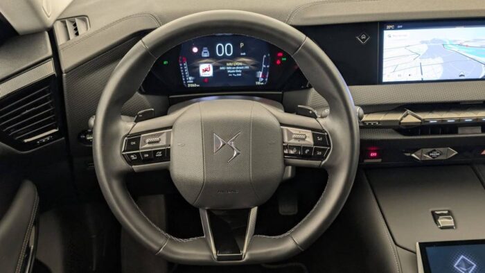 - Intérieur Cuir grainé Noir Basalte et Toile DS : Ciel de pavillon clair Décors de panneaux de porte Chrome guilloché Volant en cuir fleur Mistral Console centrale en Toile DS Mistral Planche de bord en toile DS Noir Basalte façon écaille Panneaux de portes en toile DS Noir Basalte façon écaille Sellerie en Cuir grainé Noir Basalte et Toile DS