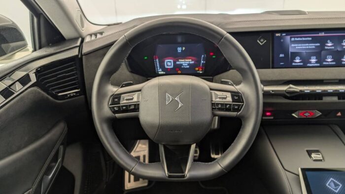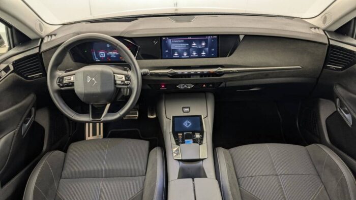 - Intérieur Alcantara Noir : Planche de bord en Alcantara Ciel de pavillon clair Sellerie en Tissu Tressé Basalte avec Alcantara et toile DS Décors de panneaux de porte Chrome guilloché Volant cuir Fleur Mistral Console en toile DS Noir Basalte Panneaux de porte en Alcantara et Toile DS Noir Basalte