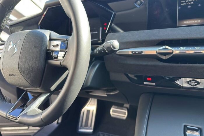 - Intérieur Alcantara Noir : Planche de bord en Alcantara Ciel de pavillon clair Sellerie en Tissu Tressé Basalte avec Alcantara et toile DS Décors de panneaux de porte Chrome guilloché Volant cuir Fleur Mistral Console en toile DS Noir Basalte Panneaux de porte en Alcantara et Toile DS Noir Basalte