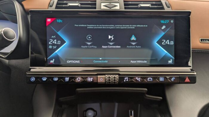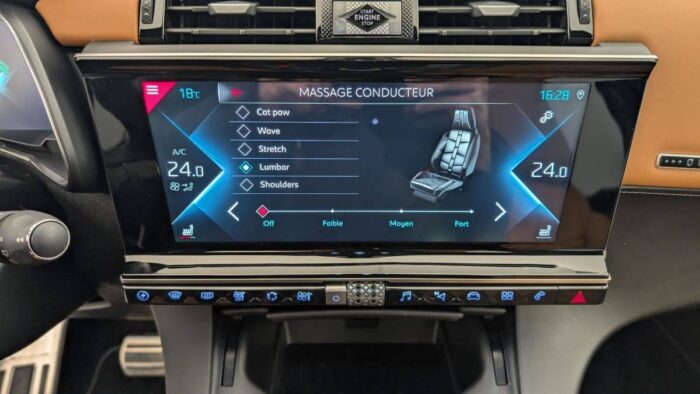 - Intérieur OPERA Brun Alezan : Sièges AV chauffants Commande Cristal Pare-brise chauffant Rétroviseur intérieur électrochrome sans cadre Sièges AV massants Sièges AV ventilés Seuils de portes en métal avec Trame DS Volant Cuir avec surpiqûres Tramontane Grille de calandre noir brillant Pommeau de levier de vitesses en cuir lisse Guillochage « Clous de Paris » Plip avec insert Chromé Rétroviseurs extérieurs rabattables électriquement et indexés à la marche AR et à mémoire de position avec projection au sol du logo DS Décors Cuir Nappa Brun Alezan avec surpiqûres "point perle" Gris Béton Sièges Cuir Nappa Brun Alezan confection bracelet