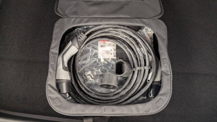 - Planche de coffre avec zone de rangement intégrée pour le câble de recharge