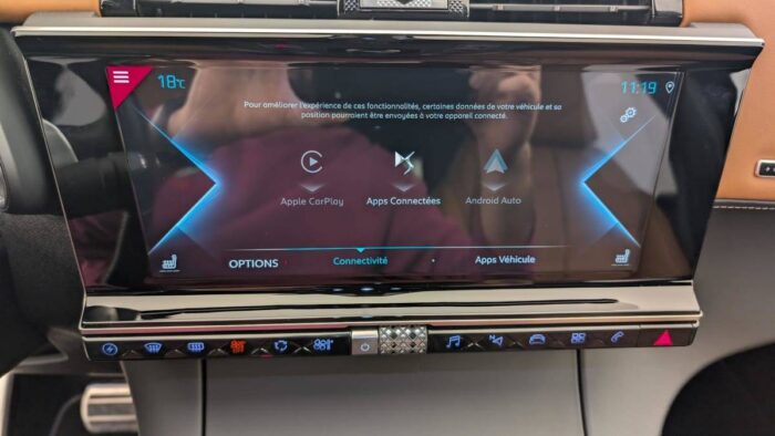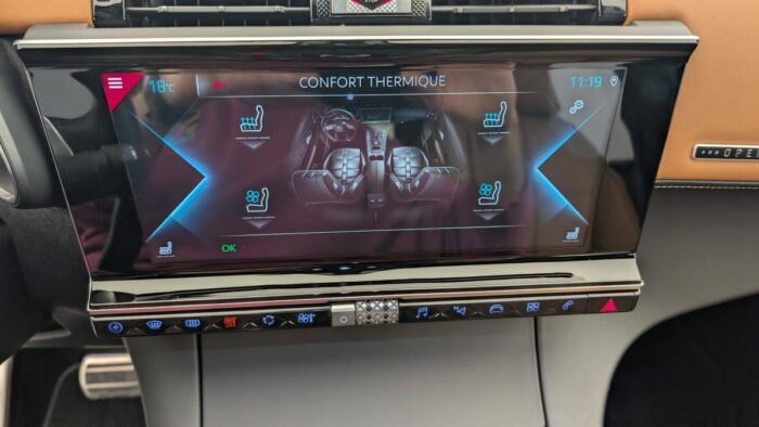 - Intérieur OPERA Brun Alezan : Sièges AV chauffants Commande Cristal Pare-brise chauffant Rétroviseur intérieur électrochrome sans cadre Sièges AV massants Sièges AV ventilés Seuils de portes en métal avec Trame DS Volant Cuir avec surpiqûres Tramontane Grille de calandre noir brillant Pommeau de levier de vitesses en cuir lisse Guillochage « Clous de Paris » Plip avec insert Chromé Rétroviseurs extérieurs rabattables électriquement et indexés à la marche AR et à mémoire de position avec projection au sol du logo DS Décors Cuir Nappa Brun Alezan avec surpiqûres "point perle" Gris Béton Sièges Cuir Nappa Brun Alezan confection bracelet