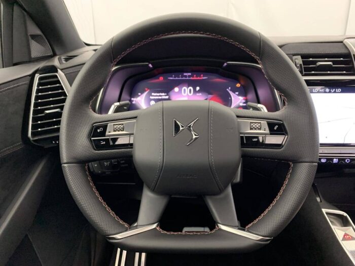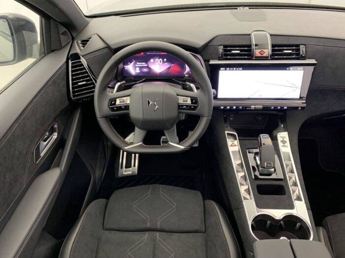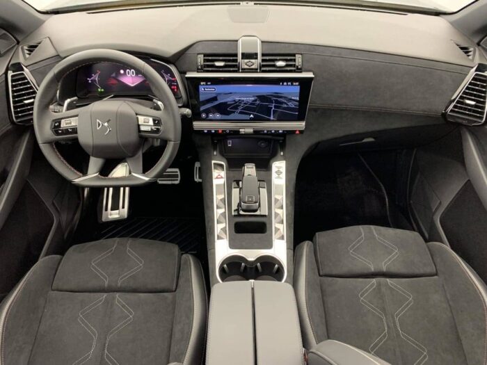 - Intérieur Alcantara Noir profond : Console centrale en Alcantara Noir Profond Panneaux de portes en Alcantara Noir Profond et surpiqûres Carmin et Or Planche de bord Alcantara Noir Profond et surpiqûres Carmin et Or Volant Cuir fleur perforé et coutures Carmin et Or Sièges Alcantara Noir Profond avec Toile DS