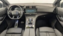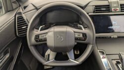 - Intérieur Cuir Nappa Noir Basalte : Panneaux de portes en Cuir Nappa Mistral Planche de bord en Cuir Nappa Mistral Console centrale en Cuir Nappa Mistral Volant Cuir fleur avec coussin d'airbag en cuir Sellerie Cuir Nappa confection bracelet et Toile DS Mistral Ciel de pavillon Sombre