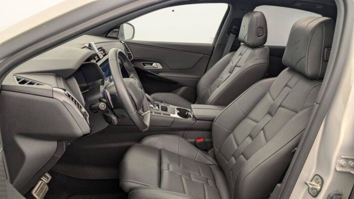 - Intérieur Cuir Nappa Noir Basalte : Panneaux de portes en Cuir Nappa Mistral Planche de bord en Cuir Nappa Mistral Console centrale en Cuir Nappa Mistral Volant Cuir fleur avec coussin d'airbag en cuir Sellerie Cuir Nappa confection bracelet et Toile DS Mistral Ciel de pavillon Sombre