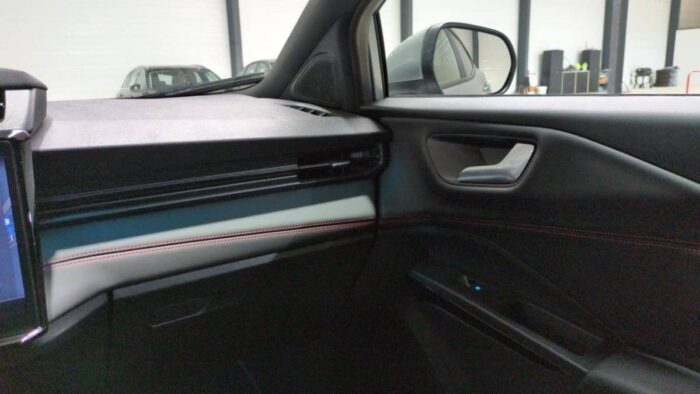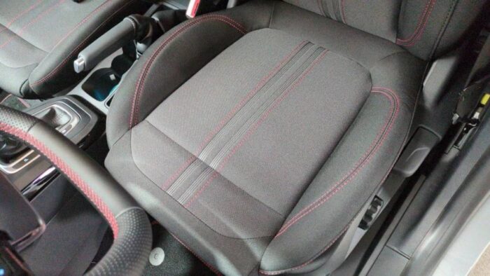 - Sièges AV en tissu avec surpiqûres rouges