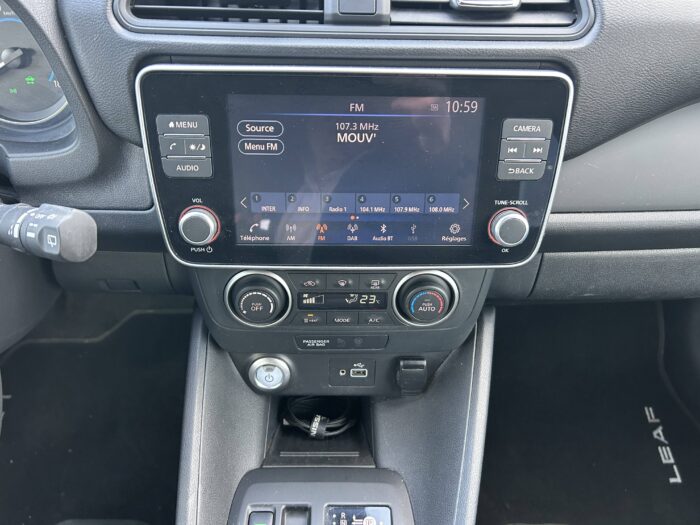 - Port CHAdeMO pour chargeur rapide 50 kW (recharge de 20% à 80% en 60 min sur 40 kWh ou 90 min sur 62 kWh)