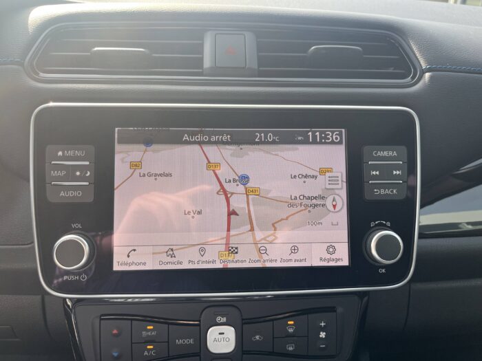 - Port CHAdeMO pour chargeur rapide 50 kW (recharge de 20% à 80% en 60 min sur 40 kWh ou 90 min sur 62 kWh)