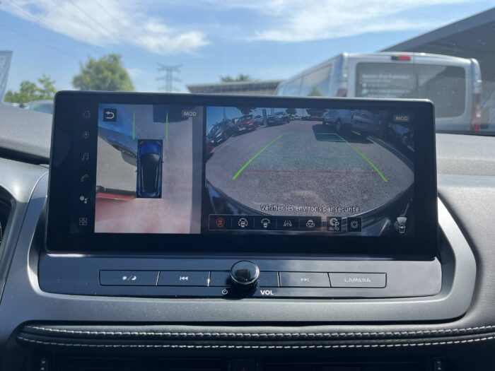 - Nissan AVM 3D - Vision Intelligente à 360° : système d'aide au stationnement qui facilite les manoeuvres de stationnement en vous offrant une vision à 360° : Caméra arrière avec repères de gabarit, Caméra AV, Caméras latérales situées dans les rétroviseurs extérieurs, Radars 360°, Fonction "capot transparent", Mémorisation stationnement régulier et intersections