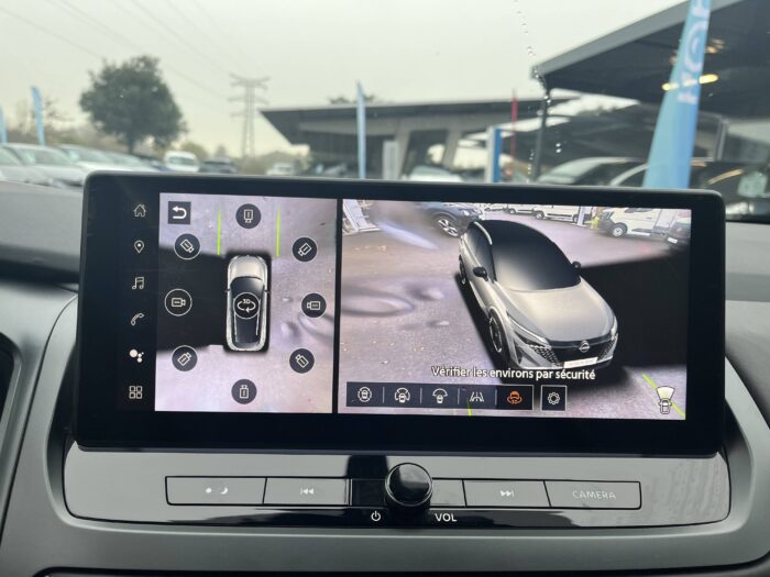 - Nissan AVM 3D - Vision Intelligente à 360° : système d'aide au stationnement qui facilite les manoeuvres de stationnement en vous offrant une vision à 360° : Caméra AR avec repères de gabarit, Caméra AV, Caméras latérales situées dans les rétroviseurs extérieurs, Radars 360°, Fonction ''capot transparent'', Mémorisation stationnement régulier et intersections