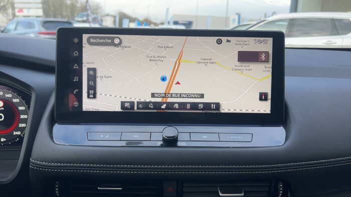 - Système de navigation NissanConnect avec écran tactile 12,3" : Live Traffic et cartes 3D, Navigation porte-à-porte, Recherche par Points d'Intérêt, Google Street View, Vue Satellite et Météo, Mise à jour des cartes et logiciels, Prix des carburants, Commandes vocales avancées avec Amazon Alexa®