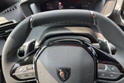 - Eléments de style éxterieur : Lécheurs de vitres Noir Brillant, Katana noir mat avec insert noir brillant et monogramme GT sur motorisations thermiques, Protections latérales de portes Noir grainées avec inserts Gris Météor, Becquet AR Noir Perla Nera, Seuils de porte aluminium avec lettrage PEUGEOT Noir