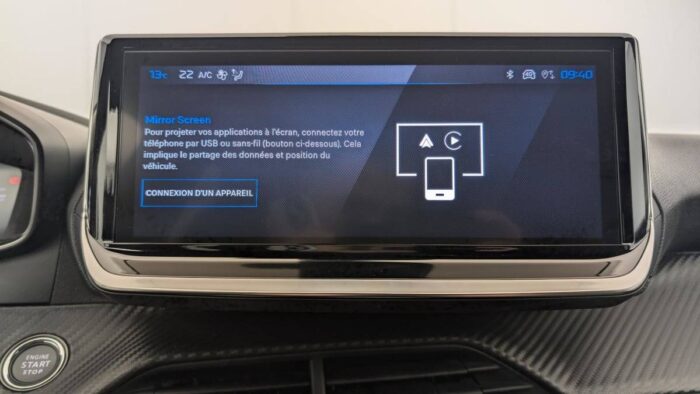 - Peugeot i-Connect: Radio DAB avec écran tactile couleur personnalisable 10" HD, Bluetooth - Mirror Screen sans fil (Apple CarPlay/Android Auto) - Wifi - 1 prise USB type C ( Data+charge), 1 prise USB type C (Charge) sur console AV