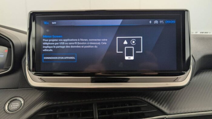 - Peugeot i-Connect: Radio DAB avec écran tactile couleur personnalisable 10" HD, Bluetooth - Mirror Screen sans fil (Apple CarPlay/Android Auto) - Wifi - 1 prise USB type C ( Data+charge), 1 prise USB type C (Charge) sur console AV