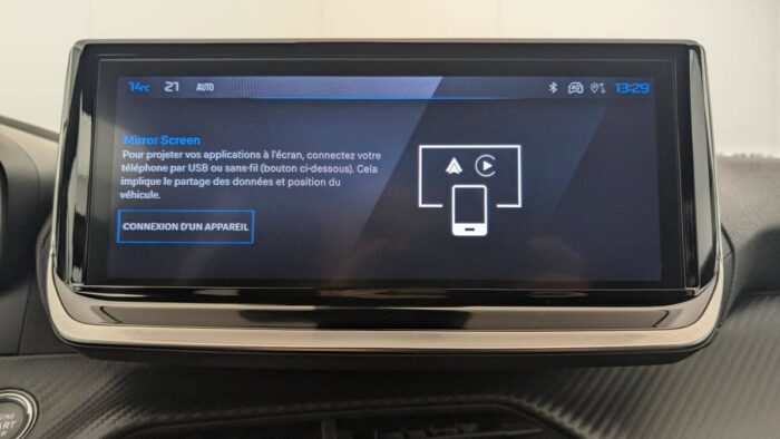 - Peugeot i-Connect: Radio DAB avec écran tactile couleur personnalisable 10" HD, Bluetooth - Mirror Screen sans fil (Apple CarPlay/Android Auto) - Wifi - 1 prise USB type C ( Data+charge), 1 prise USB type C (Charge) sur console AV
