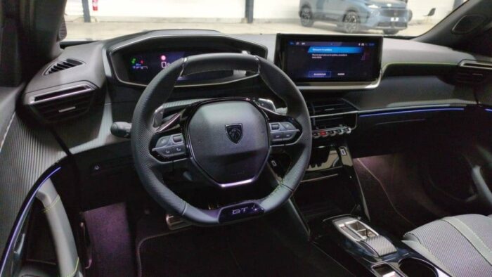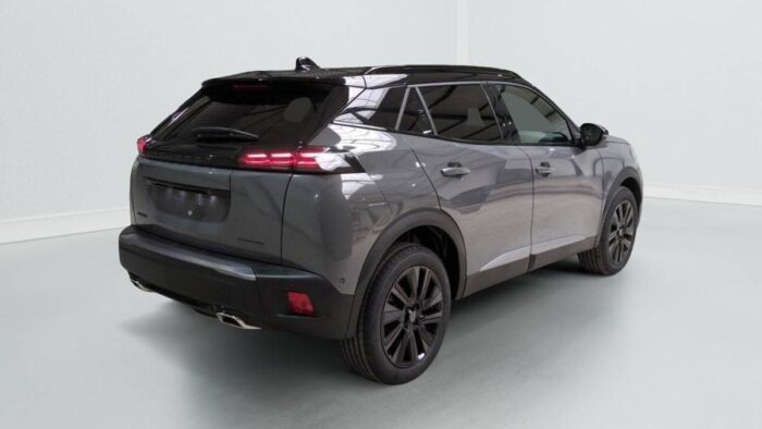 - Eléments de style éxterieur : Katana noir mat avec insert noir brillant et monogramme GT sur motorisations thermiques, Protections latérales de portes Noir grainées avec inserts Gris Météor, Becquet AR Noir Perla Nera, Seuils de porte aluminium avec lettrage PEUGEOT Noir