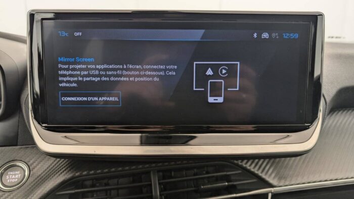 - Peugeot i-Connect: Radio DAB avec écran tactile couleur personnalisable 10" HD, Bluetooth, Mirror Screen sans fil (Apple CarPlay/Android Auto), Wifi, 1 prise USB type C ( Data+charge) et 1 prise USB type C (Charge) sur console AV