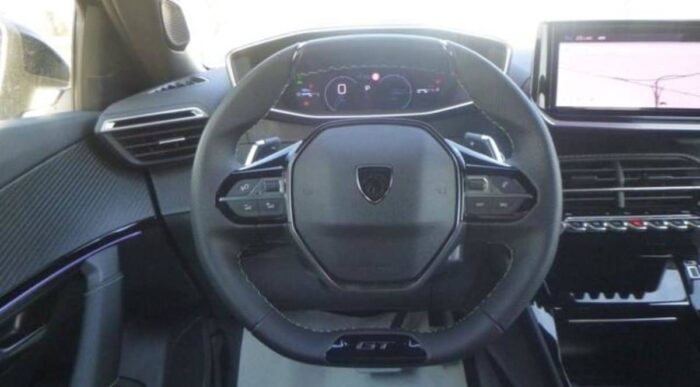 - Elements de style exterieur : Katana noir mat avec insert noir brillant et monogramme GT sur motorisations thermiques, Protections laterales de portes Noir grainees avec inserts Gris Meteor, Becquet AR Noir Perla Nera, Seuils de porte aluminium avec lettrage PEUGEOT Noir