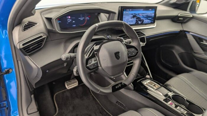 - Volant compact cuir fleur avec commandes multimédia intégrées et badge GT