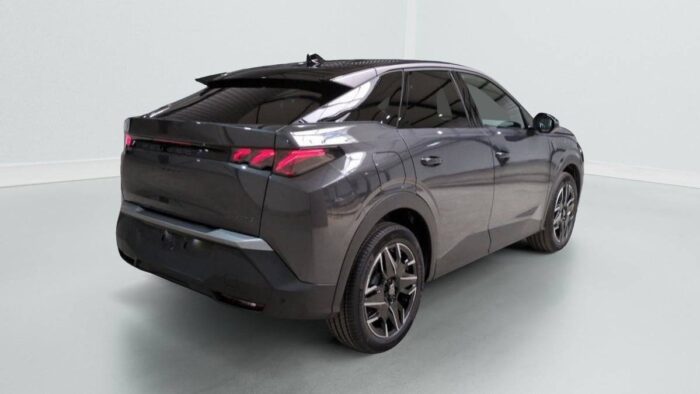 - Eléments de style éxterieur : Bandeau entre les projecteurs Noir laqué avec logo 3008. Calandre couleur caisse, écopes latérales Noir laqué, décor inférieur Gris Meteor, jupe inférieure Noir grainé. Vitres AR, vitres de custode et lunette AR surteintées. Lécheurs de vitres masqués. Enjoliveurs de passages de roues et protections inférieures de portes Noir grainé. Bandeau entre les feux AR Noir laqué avec lettrage PEUGEOT. Pare chocs AR avec décor Gris Meteor et jupe inférieure Noir grainé, Monogrammes AV et AR