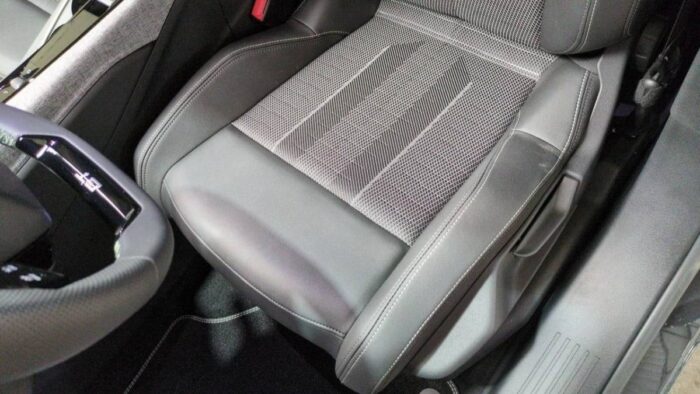 - Eléments de style intérieure : Planche de bord moussée avec décor tissu RIMINI chiné, décor d'alcôve en Aluminium sérigraphié, façade et aérateurs Noir laqué avec décor Cast Iron, Panneaux de portes avec décor tissu RIMINI chiné, décor d'alcôve en Aluminium sérigraphié et jonc Cast Iron, accoudoirs TEP Isabella, surpiqûres Iced Clay à l' AV, Console centrale avec décor tissu RIMINI chiné, façade Noir laqué et jonc Cast Iron, accoudoir tissu RIMINI chiné