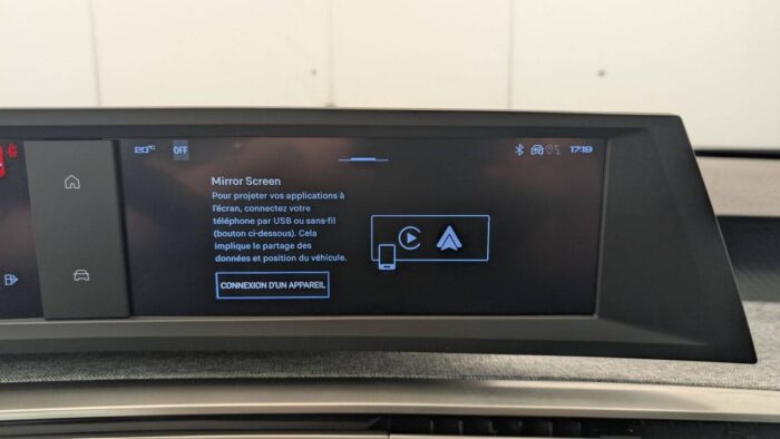 - PEUGEOT i-Connect Radio DAB, Bluetooth (connexion 2 téléphones), Mirror Screen sans fil (Apple CarPlay / Android Auto), Peugeot Connect SOS & Assistance, 1 prise USB C (Data & charge)