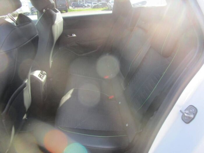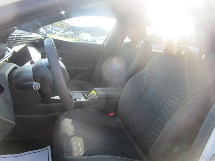 - Sellerie tissu noir UZILA embossé, tri-matières avec accompagnement TEP Isabella Mistral, doubles surpiqûres vert Adamite / gris Tramontane, et blason PEUGEOT sur appuie-têtes AV