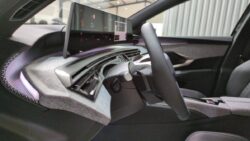 - Eléments de style intérieure : Planche de bord moussée avec décor tissu RIMINI chiné, décor d'alcôve en Aluminium sérigraphié, façade et aérateurs Noir laqué avec décor Gris Stène + Panneaux de portes avec décor tissu RIMINI chiné, décor d'alcôve en Aluminium sérigraphié et jonc Gris Stène, accoudoirs TEP Isabella, surpiqûres Iced Clay à l'AV + Console centrale avec décor tissu RIMINI chiné, façade Noir laqué et jonc Gris Stène, accoudoir tissu RIMINI chiné