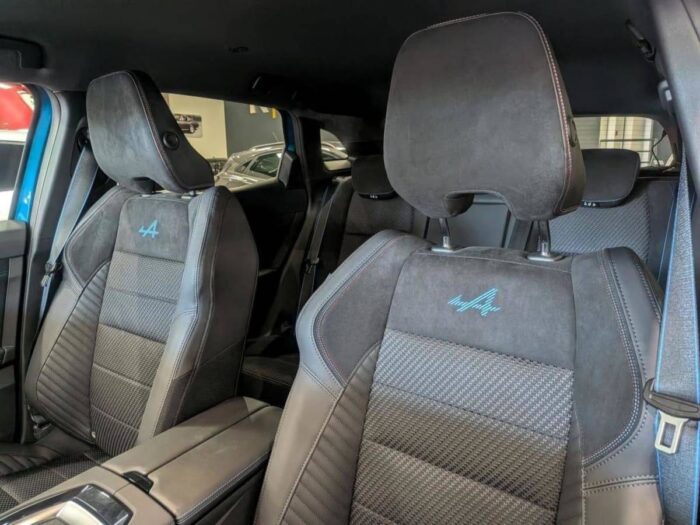- Sellerie mixte tissu carbone Alcantara® avec surpiqûres bleu, blanc, rouge