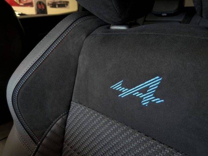 - Sellerie mixte tissu carbone Alcantara® avec surpiqûres bleu, blanc, rouge