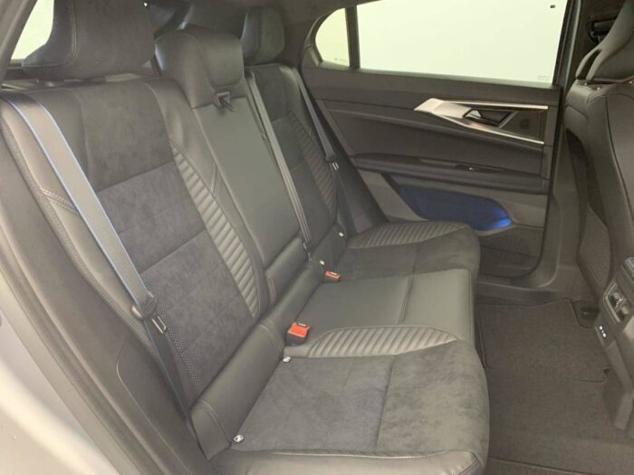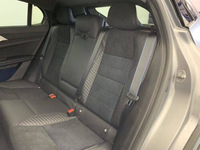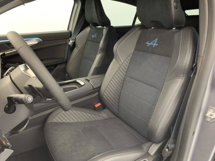 - Sellerie mixte Alcantara avec surpiqûres bleues et logo Alpine lumineux