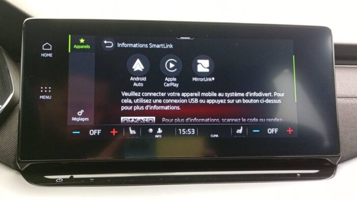 - Smartlink (Mirrorlink, Carplay, Android Auto) sans fil uniquement avec Apple Carplay